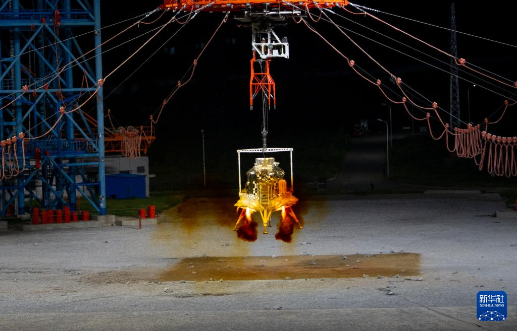 揽月月面着陆器在地外天体着陆试验场进行测试(资料照片)。新华社发(韩庆策 摄)