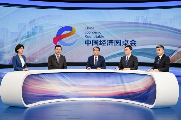 嘉宾们在第二十期“中国经济圆桌会”大型全媒体访谈节目录制现场交流发言。新华社记者 陈晔华 摄