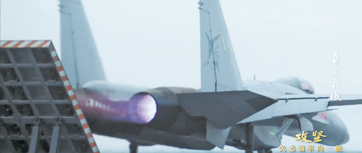 《攻坚》第四集《勇闯新域》中的舰载战斗机起飞画面