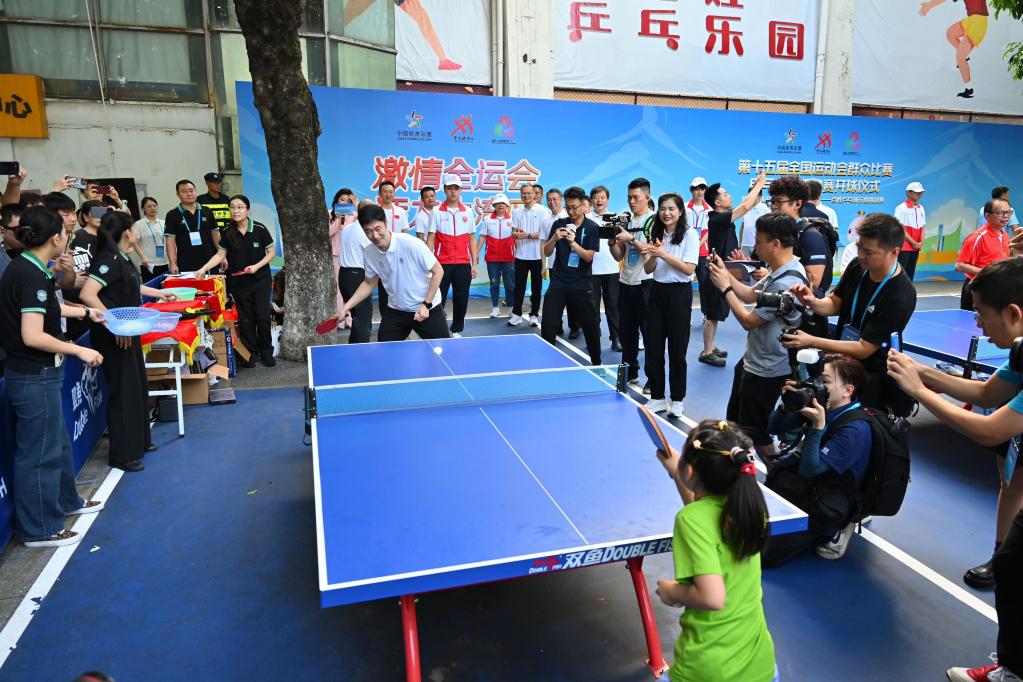 在欢呼声与助威声中,中国乒乓球协会主席王励勤、乒乓球奥运冠军乔红、李晓霞、刘诗雯与乒乓球业余爱好者一同挥拍、切磋球技。“乒乓球作为我们国家的国球有深厚的群众基础,在现场互动的青少年、中老年朋友们参与乒乓球的热情很高,水平也很高。”王励勤说。