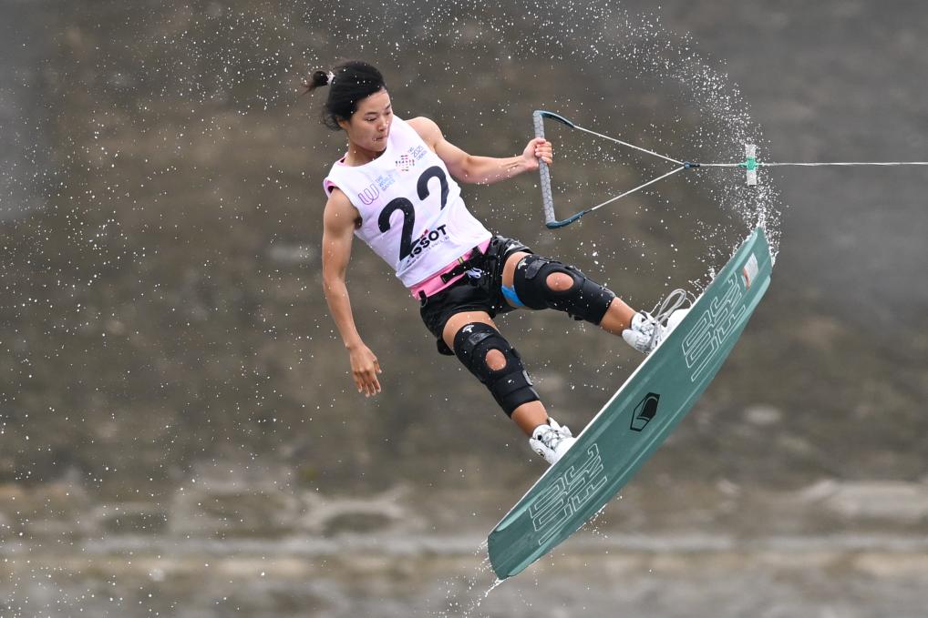 8月10日,中国选手徐露在2025年成都世运会女子尾波滑水自由式决赛中。新华社记者 陈振海 摄
