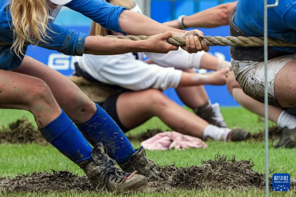 当日,2025年成都世运会混合室外拔河580公斤级比赛在东安湖体育公园中央广场举行。