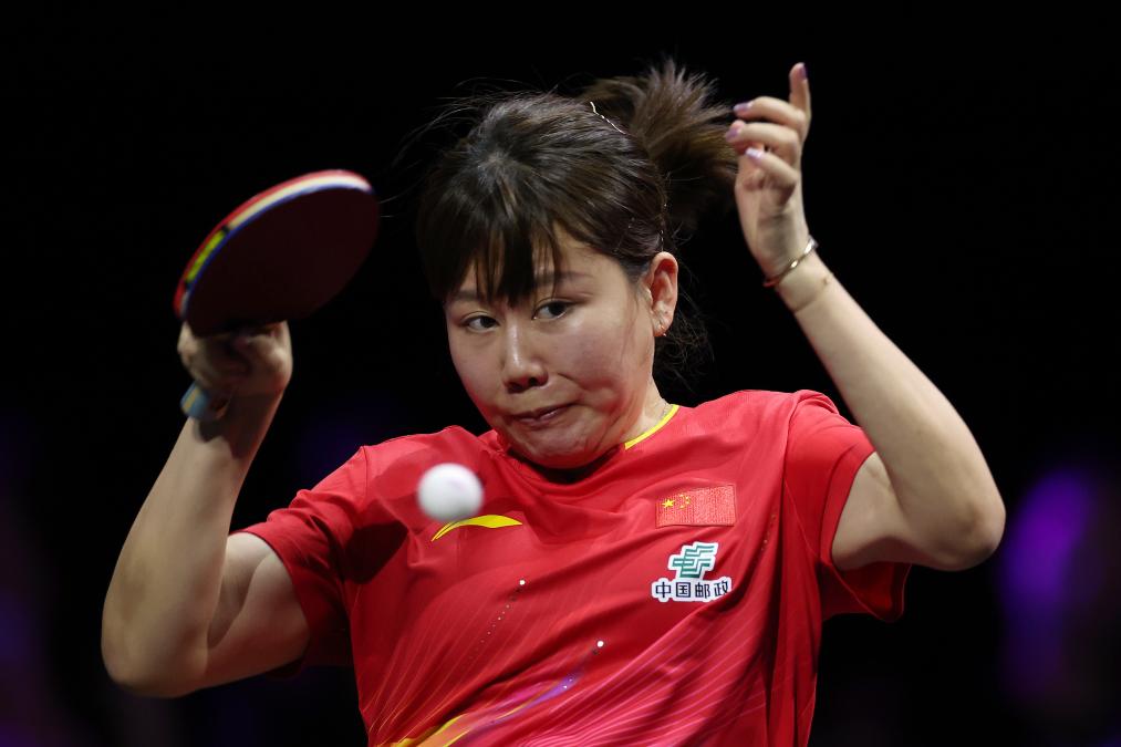 陈幸同在与孙颖莎的决赛中回球。新华社记者 贾浩成 摄