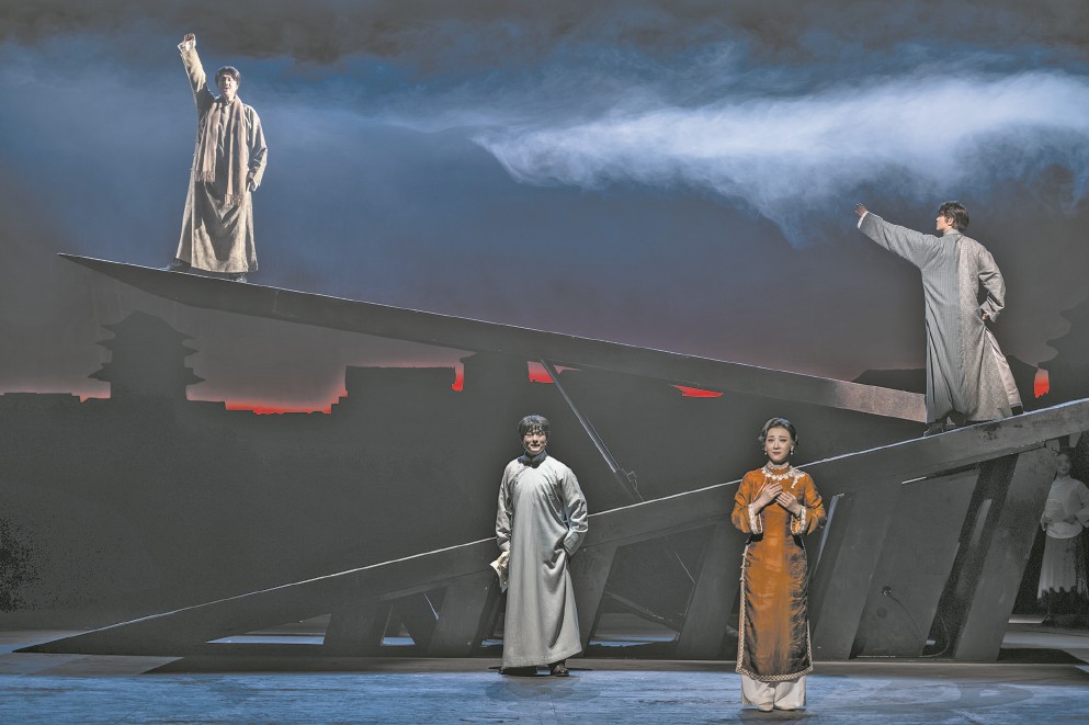 大型原创黄梅戏《延年和乔年》从安庆来到上海,用延乔兄弟二人的家乡戏向他们致敬。图为剧照。(演出方供图)