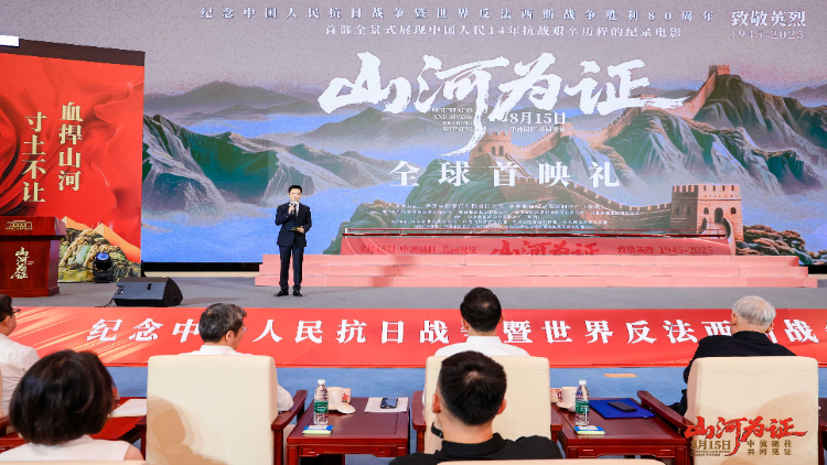 中央新闻纪录电影制片厂(集团)党委书记、董事长姚永晖在致辞中表示,纪录电影《山河为证》主创团队以敬畏之心从海量尘封的影像资料中连点成线,2万字精心打磨的文稿、104分钟的凝练叙事,立足全景式呈现、坚守真实性原则、创新影像表达,展现了中华儿女在中国共产党的领导下不屈不挠、浴血奋战的伟大抗战精神。