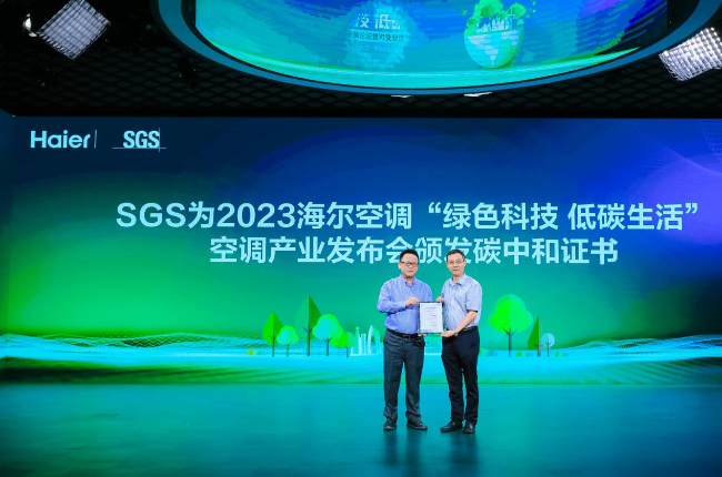 会上,SGS中国区副总裁辛斌宣布,“绿色科技 低碳生活,空调产业高质量发展论坛暨可变分流新科技发布会”属于碳中和会议。此次发布会预估200吨二氧化碳排放量,均由会场的绿电所抵消,实现了“发布会碳中和”。