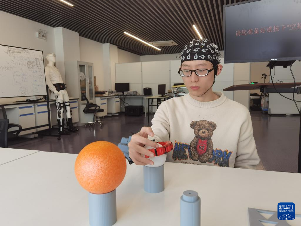 “通过非侵入式脑机接口技术,采集大脑控制信号,就可以通过读取脑信息,控制外肢体。”王壮告诉记者,“起名‘灵犀’,就是想表明通过脑机接口技术,大脑与‘断联’的手指依旧可以有联系。”