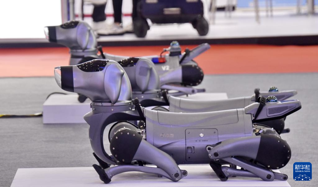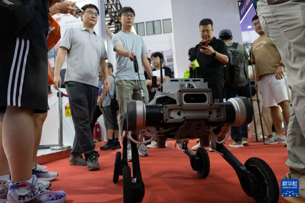 这是8月8日拍摄的2025世界机器人大会上展出的智能机器狗。