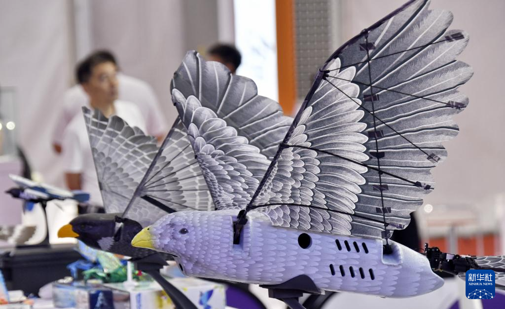 这是8月8日拍摄的2025世界机器人大会上展出的仿真飞禽。