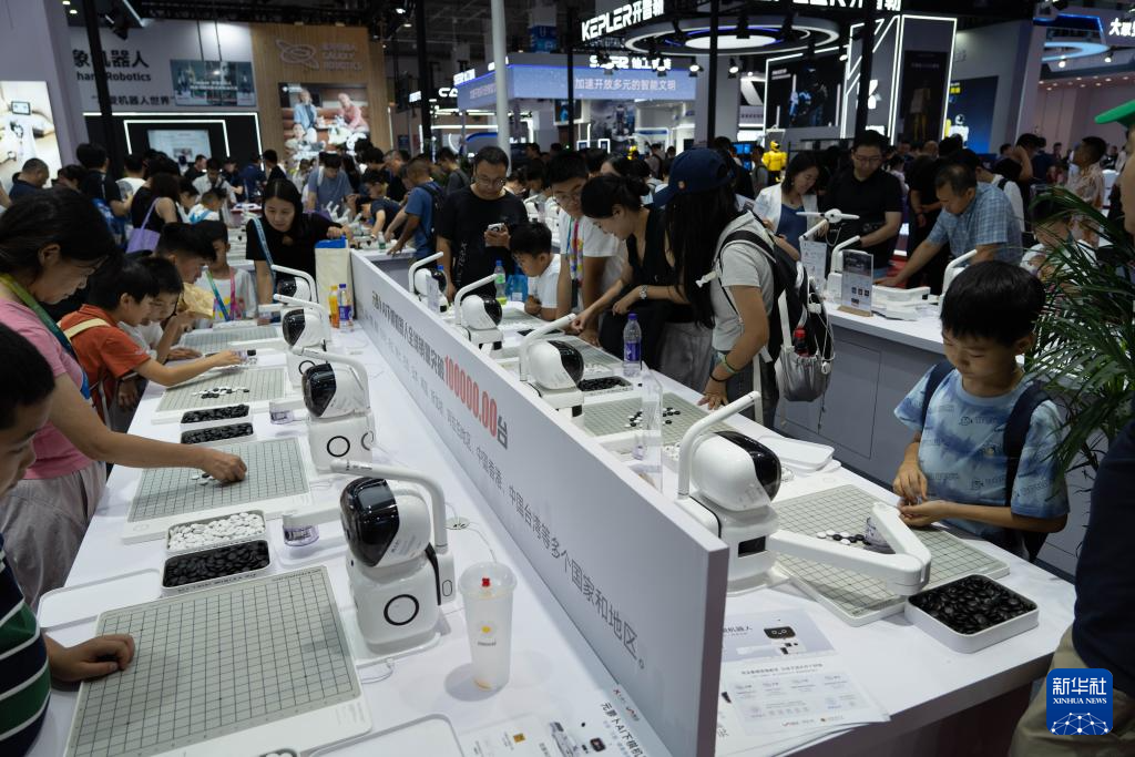 8月8日,观众在2025世界机器人大会上与机器人对弈。