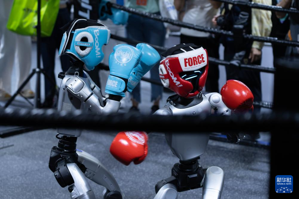 这是2025世界机器人大会上展示的一款拳击机器人(8月8日摄)。
