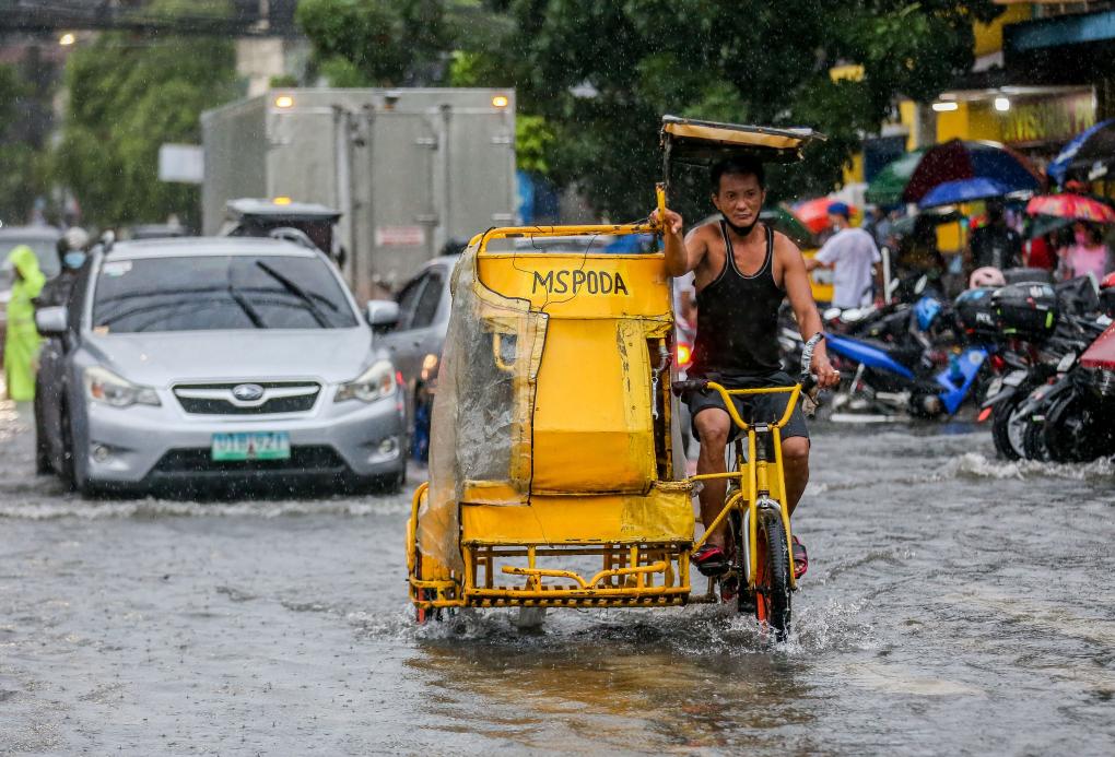 2021年7月21日,车辆在菲律宾马尼拉街头的积水中前行。新华社发(乌马利摄)
