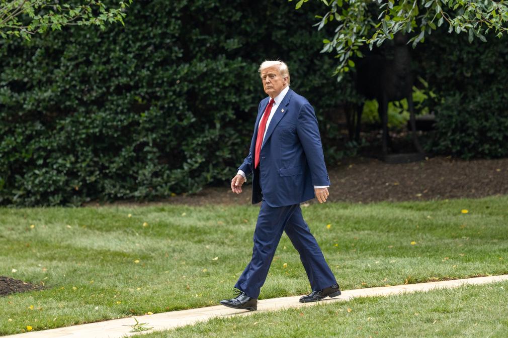 8月1日,在美国首都华盛顿白宫,美国总统特朗普走向南草坪。新华社记者 胡友松 摄
