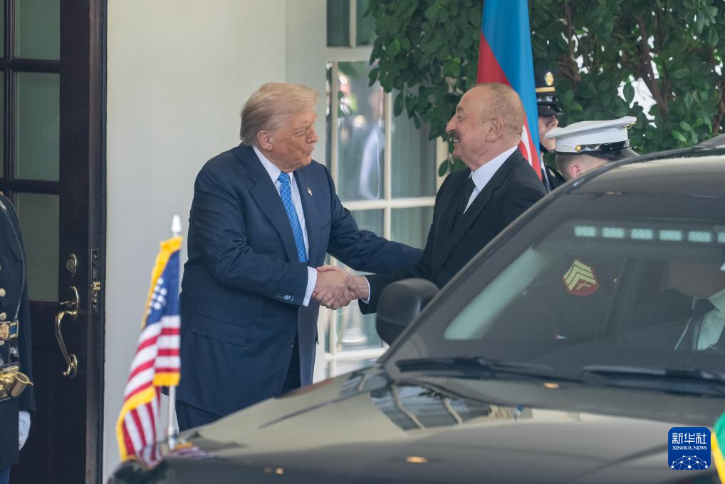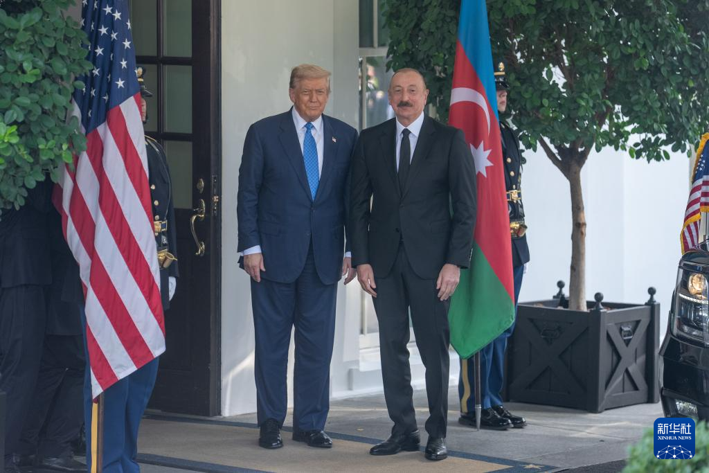 8月8日,美国总统特朗普(左)在华盛顿白宫迎接阿塞拜疆总统阿利耶夫。新华社记者 胡友松 摄