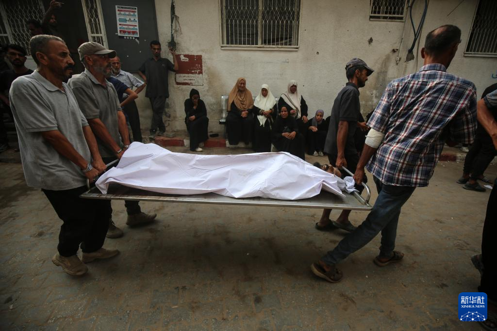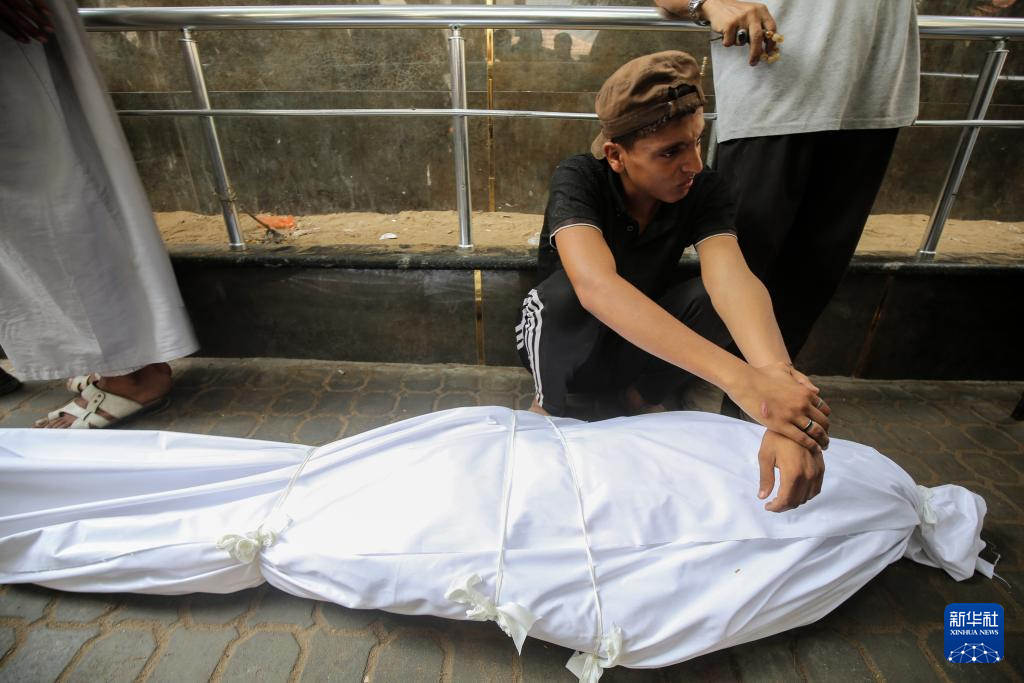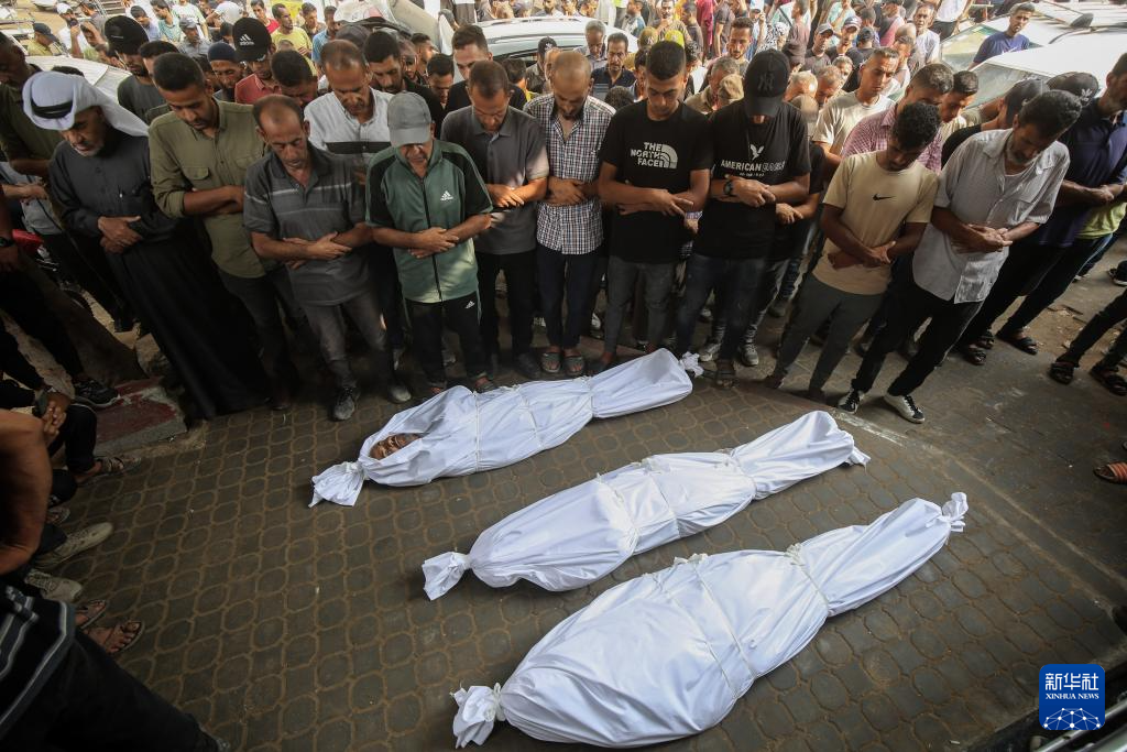 8月10日,人们在加沙城为在一处救援点附近被以军杀害的同胞送葬。