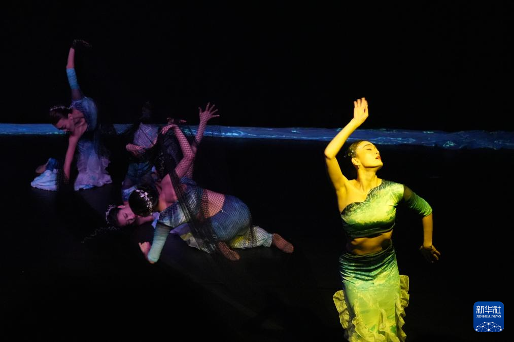 8月11日,在英国爱丁堡,上海戏剧学院舞蹈学院的演员表演舞剧《净境》。新华社记者 郑博非 摄