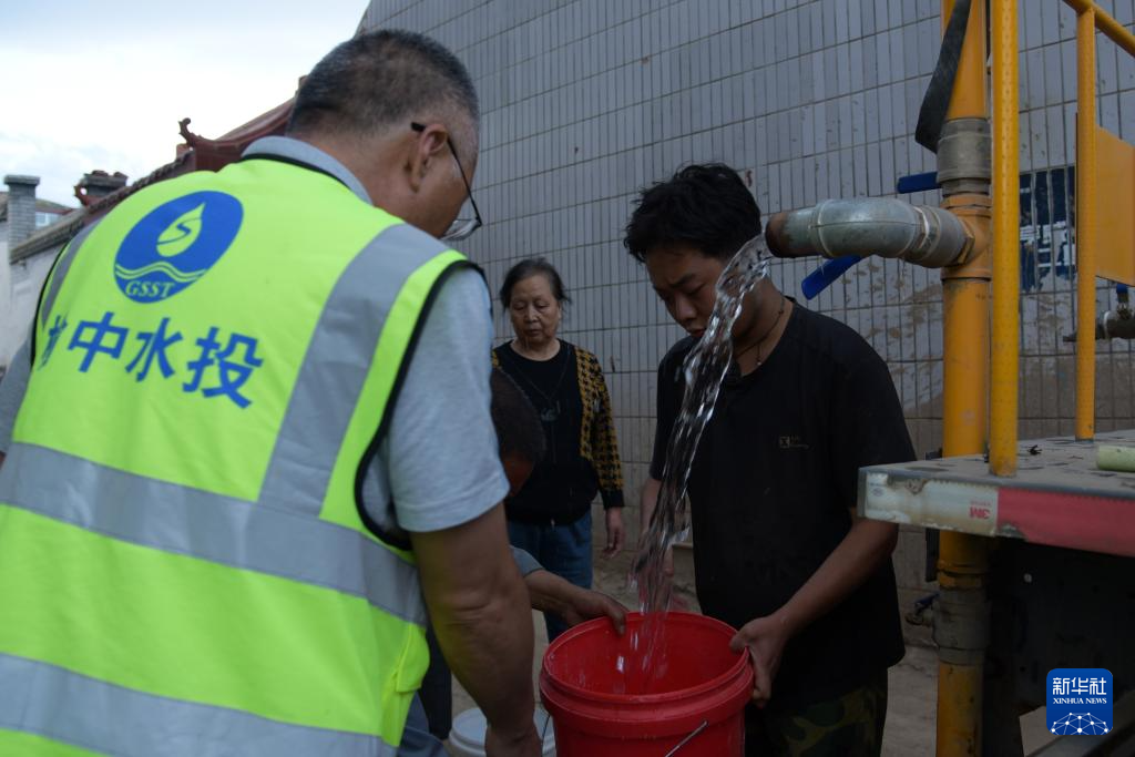 8月11日,在榆中县城关镇兴隆山村,当地水务部门为村民送去饮用水。