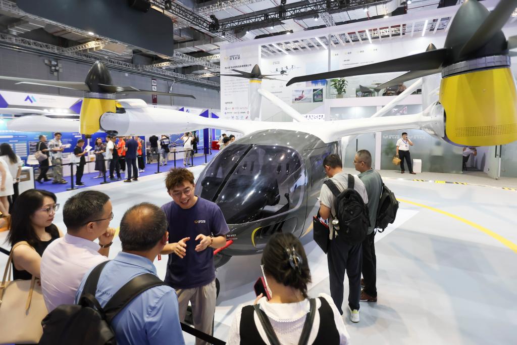 7月23日,人们在博览会沃飞长空展区了解产品情况。新华社记者王翔 摄