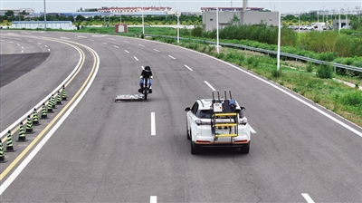 图为测试车辆在天津(西青)国家级车联网先导区封闭测试场内进行自动驾驶主动安全功能测试。新华社记者 孙凡越 摄