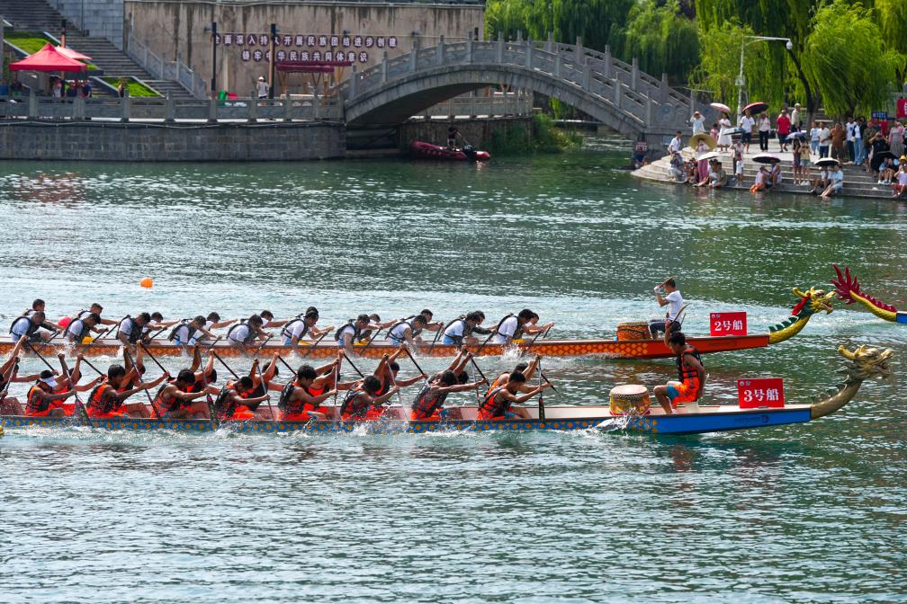 7月19日,龙舟队伍在镇远县㵲阳河上比赛。新华社发(龙建睿摄)