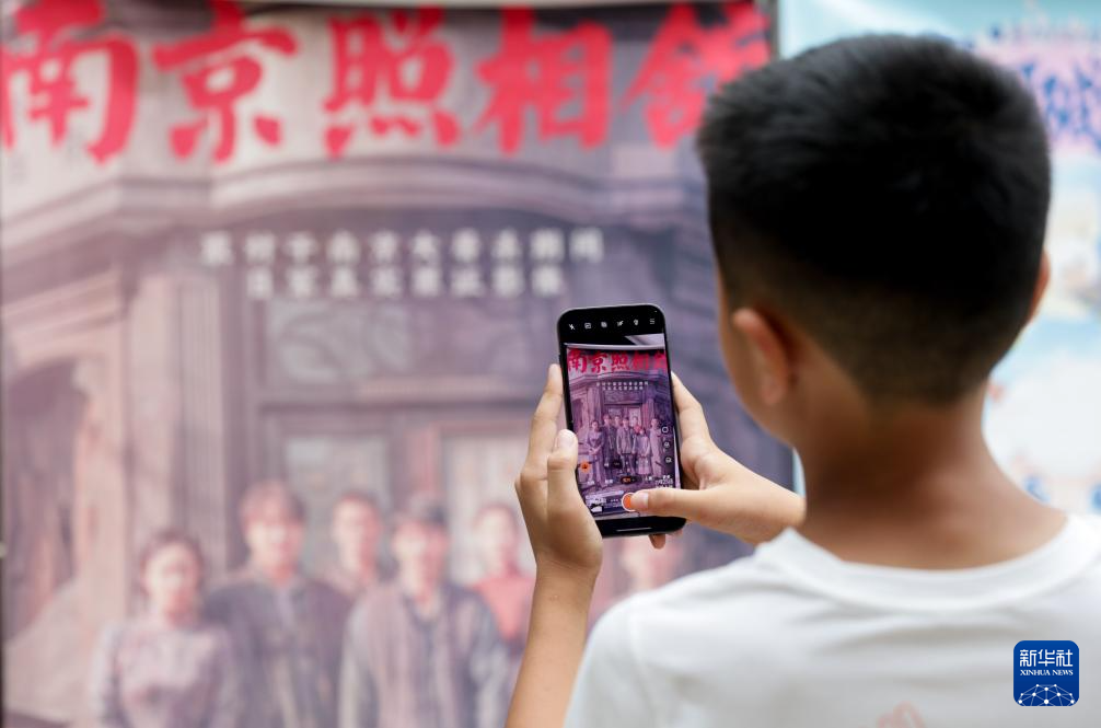8月10日,观众在云南省丽江市一家影城拍摄电影《南京照相馆》预告片。