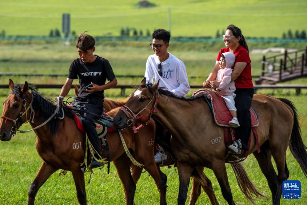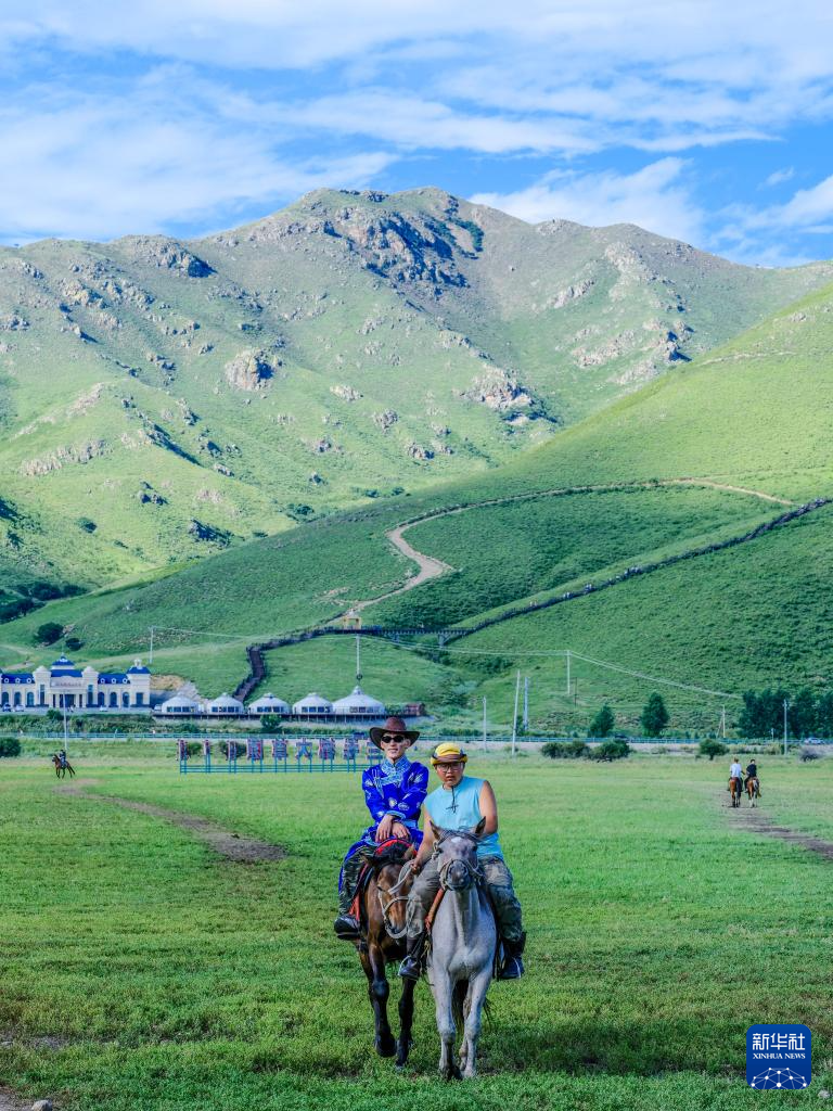 8月9日,游客在内蒙古兴安盟科尔沁右翼前旗乌兰毛都草原上骑马休闲。